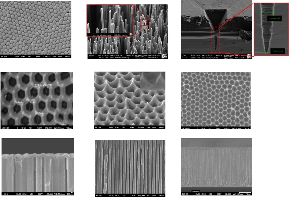 瑞霸專精於陽極氧化鋁(AAO)奈米結構製作,並可客製化生產不同孔徑、孔間距、膜厚、單通、雙通等各種的次微米結構形。