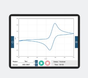 VBS-1000X 是可攜式電化學儀。不僅可以使用PC電腦進行實驗標準量測,也可以透過iPad進行現場無線式電化學量測,VBS-1000X電化學功能有開路電位法(OCV)、循環伏安法(CV)、線性循環伏安掃